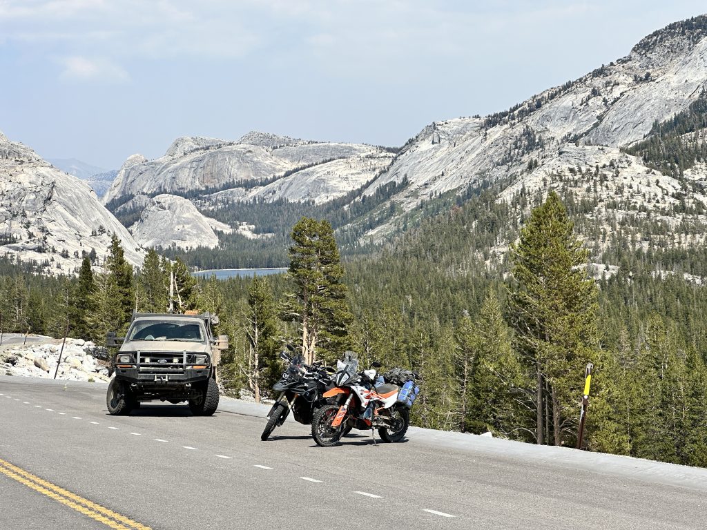 From Bear Valley, the ride shifted. Dirt gave way to pavement as we crossed into Yosemite National Park, 206 miles of winding climbs and breathtaking alpine passes. The air cooled, reminding us of the Sierra’s sheer scale. Granite domes, waterfalls, and endless vistas spoke to the grandeur of this place. Though less technical, the miles tested stamina. It was a reminder that challenge isn’t only found on rugged trails—sometimes it’s the long haul that demands the most perseverance.