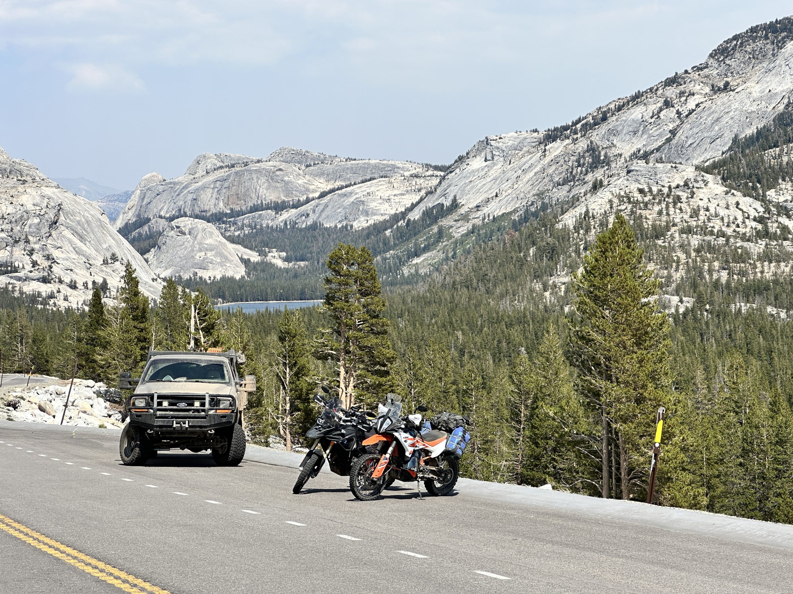 Climbing out of Truckee, we followed the serpentine curves of Old Highway 40 up Donner Pass. The paved ascent—sharp hairpins, dramatic views—was unforgettable, the kind of road that etches itself into memory. At the summit, a quiet pause: jagged peaks, alpine lakes, and the knowledge that countless travelers once fought their way across this same divide. The descent into broken pavement and dirt trails was humbling, the Sierra reminding us that beauty is often guarded by challenge.
